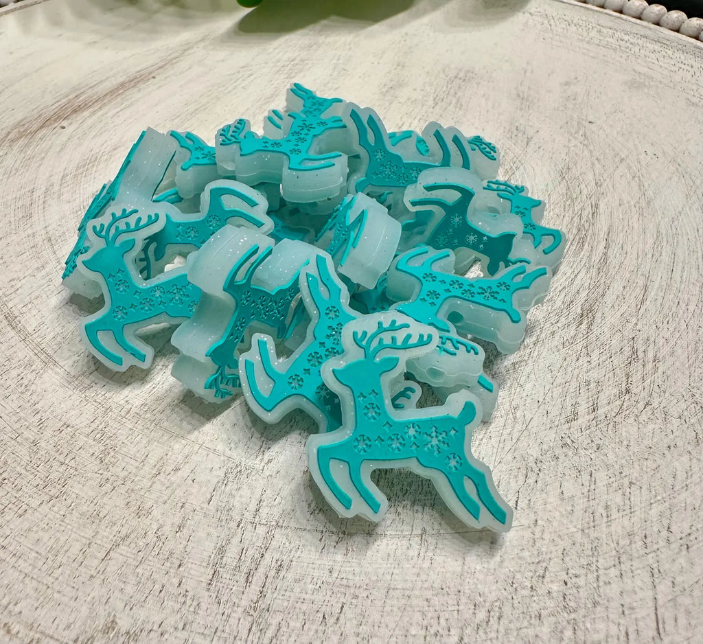 Silicone Focal - Pink & Turquoise Glitter Deer