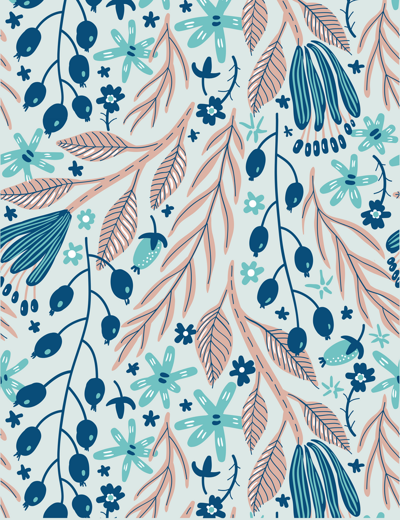 Colors & Design: The Feeling Floral design was created by me! With hues of blue, aqua, and beige, these bags are sure to stand out!