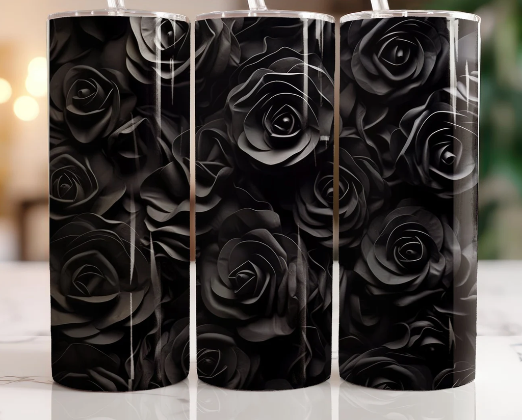 Skinny Tumbler Sublimation Wrap - Black Roses 3D