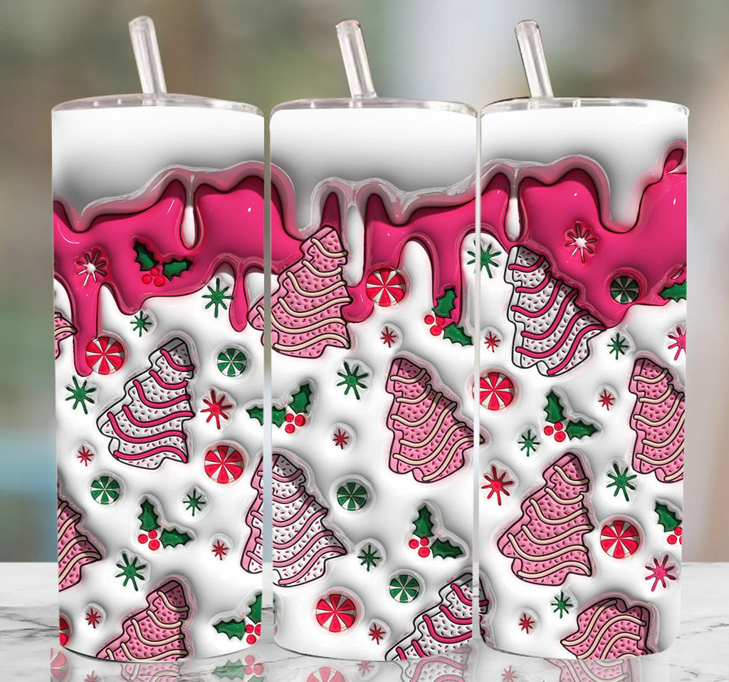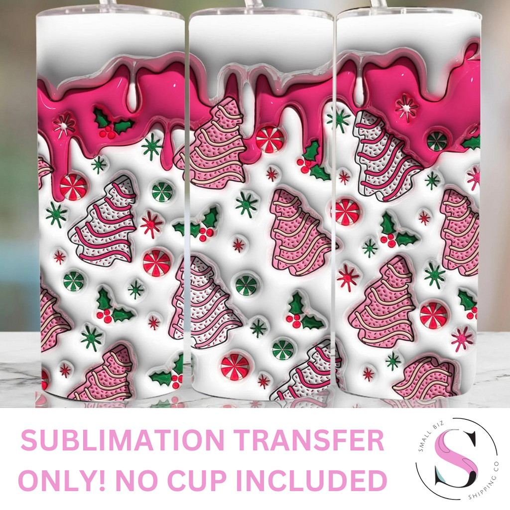 Skinny Tumbler Sublimation Wrap - Christmas Tree Cakes Pink Inflated
