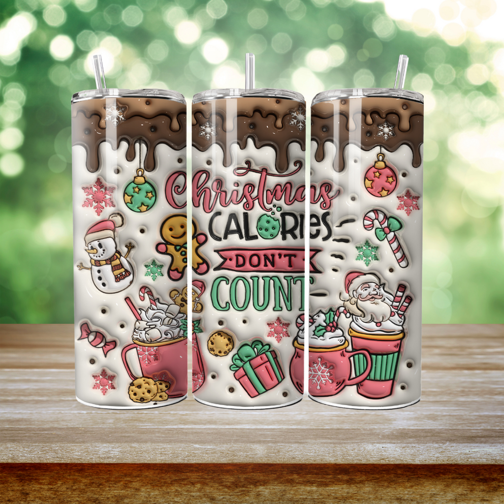 Skinny Tumbler Sublimation Wrap - Christmas Calories Don't Count