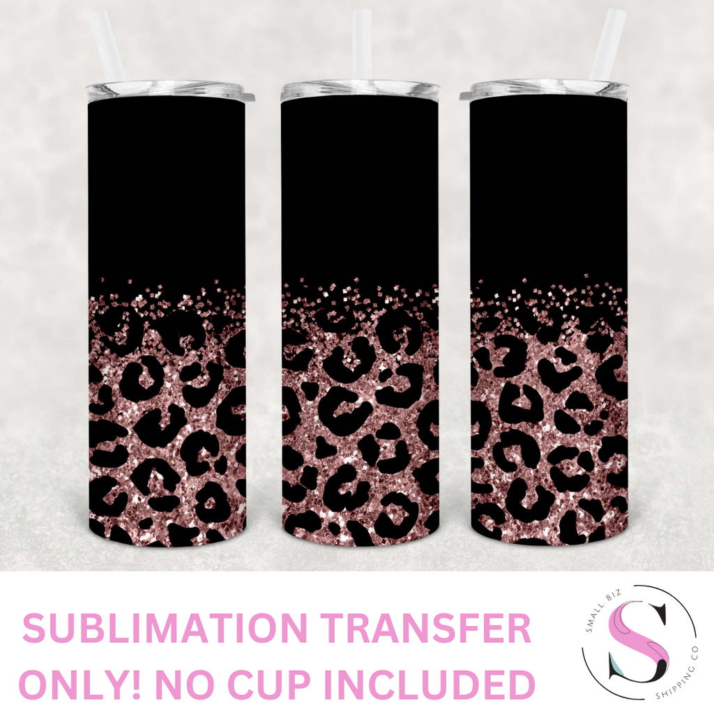 Skinny Tumbler Sublimation Wrap - Matte Black and Light Pink/Rose Gold Glitter Leopard